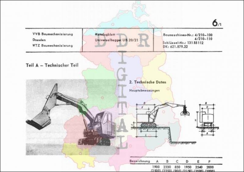 Die einzelnen Baumaschinenkatalogblätter sind in drei Teile gegliedert.