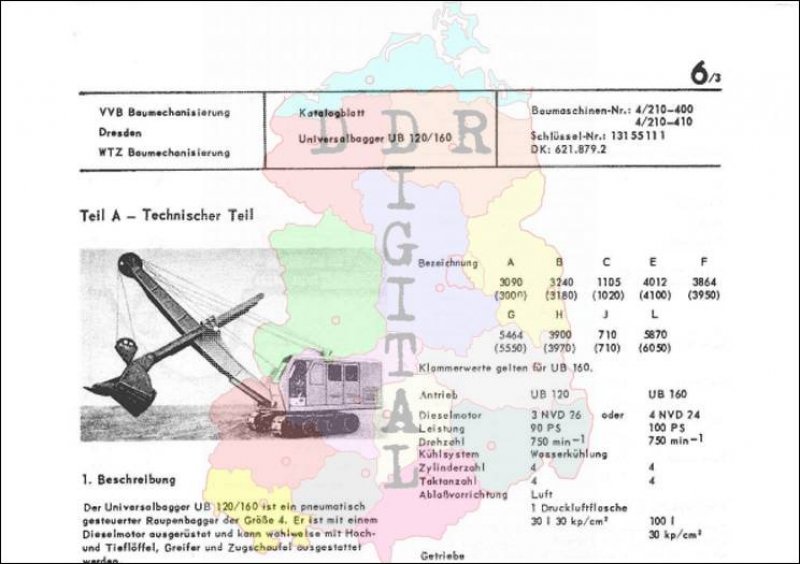 Die einzelnen Baumaschinenkatalogblätter sind in drei Teile gegliedert.