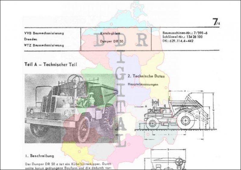 Teil A - Technischer Teil, enthält die allgemeine Beschreibung des Maschinentyps unter Berücksichtigung wesentlicher Merkmale technischer Art, wie z.B. Abmessungen, Arbeitsgeschwindigkeit, Antrieb, Getrieb u.a.