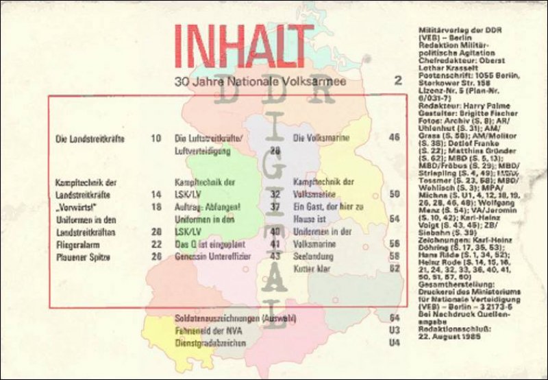 Ausgabe: Autor: Redaktion Militärpolitische Agitation Herausgeber: Militärverlag der Deutschen Demokratischen Republik Erscheinungsjahr: 1985 Anzahl Seiten: 68
