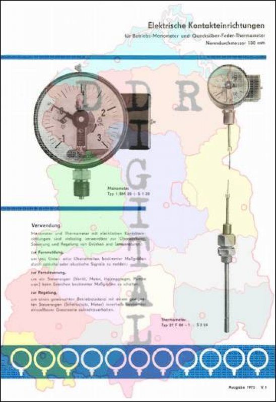 Elektrische Kontakteinrichtungen für Betriebs-Manometer und Quecksilber-Feder-Thermometer