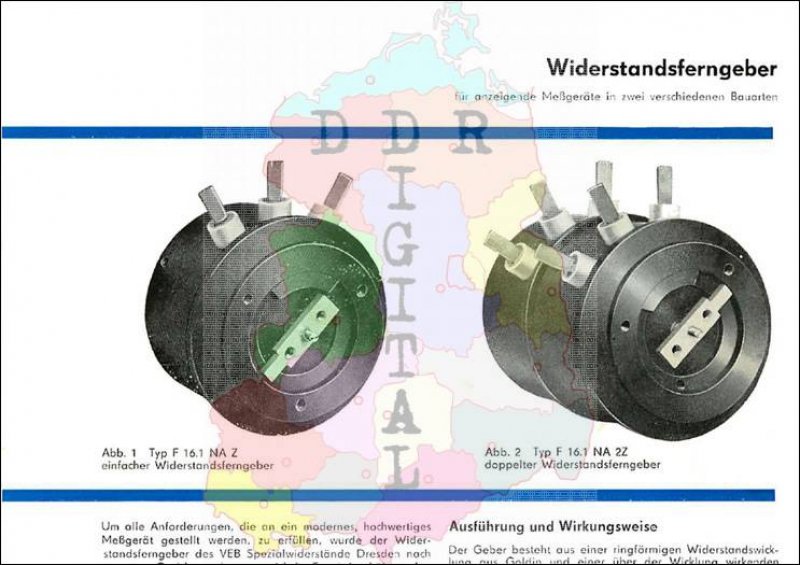 Widerstandsferngeber für anzeigende Meßgeräte in zwei unterschiedlichen Bauarten