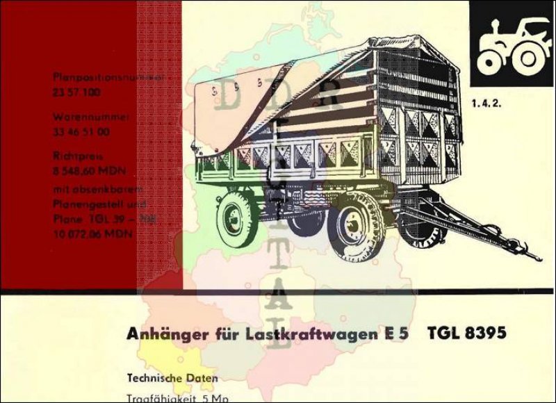 Herausgeber: VVB Landmaschinen- und Traktornbau Leipzig Etwicklungs- und Herstellerwerk: VEB Karosseriewerke Dresden Anzahl Seiten: 2 In dem Landmaschinen-Katalog sind Maschinen und Geräte enthalten, welche zur weiteren Mechanisierung in der sozialistischen Landwirtschaft bestimmt waren. Dieser Katalog sollte die Genossenschaften bei der Planung neuer Technik für ihren Betrieb unterstützen.