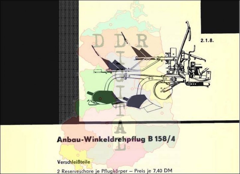 Herausgeber: VVB Landmaschinen- und Traktornbau Leipzig Entwicklungsbetrieb: VEB Bodenbearbeitungsgeräte Leipzig Herstellerbetrieb Schutz & Bethke KG Frankfurt (Oder) Anzahl Seiten: 2 In dem Landmaschinen-Katalog sind Maschinen und Geräte enthalten, welche zur weiteren Mechanisierung in der sozialistischen Landwirtschaft bestimmt waren. Dieser Katalog sollte die Genossenschaften bei der Planung neuer Technik für ihren Betrieb unterstützen.