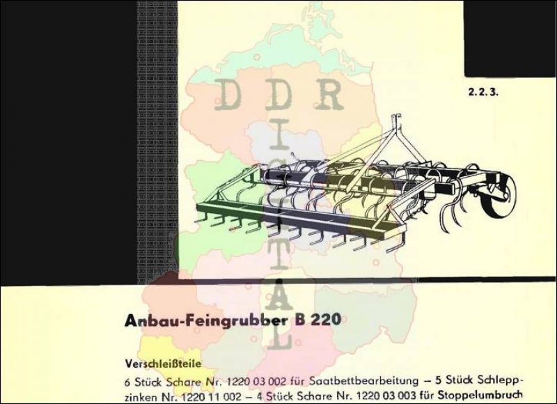 Herausgeber: VVB Landmaschinen- und Traktornbau Leipzig Entwicklungs- und Herstellerbetrieb: VEB Landmaschinenbau Torgau Anzahl Seiten: 2 In dem Landmaschinen-Katalog sind Maschinen und Geräte enthalten, welche zur weiteren Mechanisierung in der sozialistischen Landwirtschaft bestimmt waren. Dieser Katalog sollte die Genossenschaften bei der Planung neuer Technik für ihren Betrieb unterstützen.