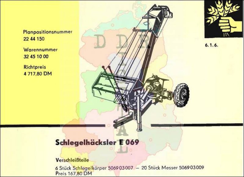 Herausgeber: VVB Landmaschinen- und Traktornbau Leipzig Entwicklungs und Herstellerbetrieb: VEB "Fortschritt" Erntebergungsmaschinen Neustadt / Sa. Anzahl Seiten: 2 In dem Landmaschinen-Katalog sind Maschinen und Geräte enthalten, welche zur weiteren Mechanisierung in der sozialistischen Landwirtschaft bestimmt waren. Dieser Katalog sollte die Genossenschaften bei der Planung neuer Technik für ihren Betrieb unterstützen.