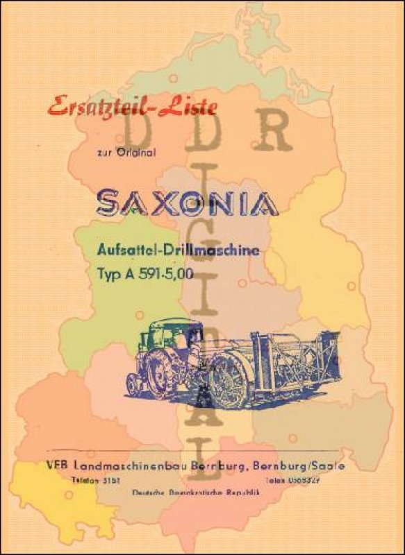 Ersatzteil-Liste zur Original SAXONIA Aufsattel-Drillmaschine Typ A 591-5,00