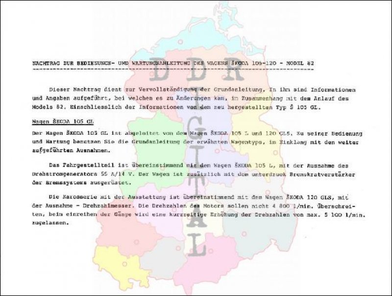 Nachtrag zur Bedienungs- und Wartungsanleitung des Wagens Skoda 105-120 - Modell 82