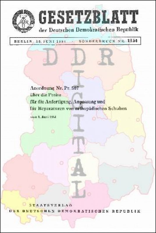 Anordnung Nr. Pr. 507 über die Preise für die Anfertigung, Anpassung und Reparaturen von orthopädischen Schuhen