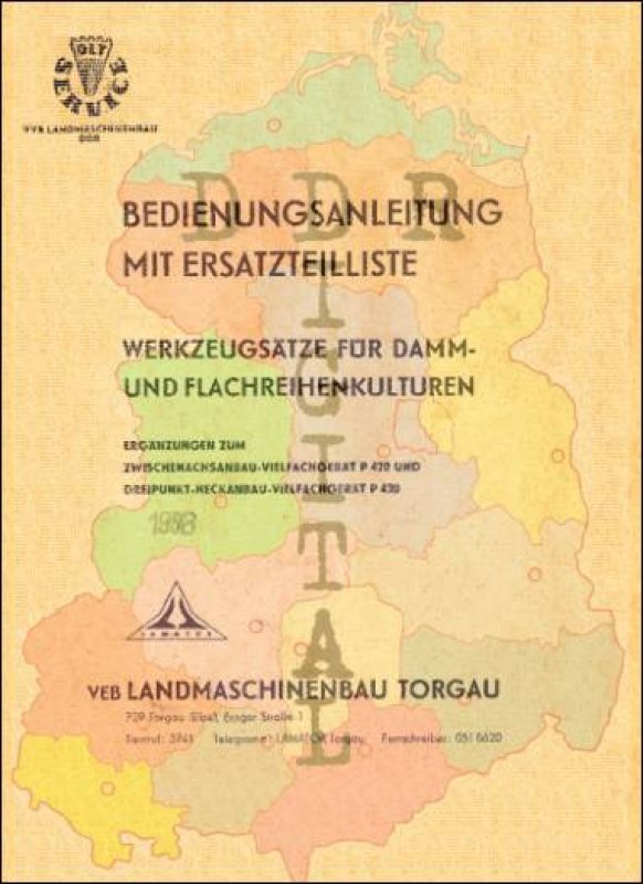 Ausgabe: Autor: VEB Landmaschinenbau Torgau Herausgeber: VEB Landmaschinenbau Torgau Erscheinungsjahr: 1967 Anzahl Seiten: 44