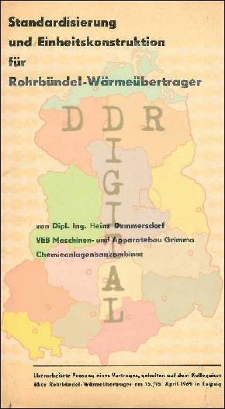 Ausgabe: Autor: Heinz Dummersdorf Herausgeber: VEB Maschinen- und Apparatebau Grimma Erscheinungsjahr: 1969 Anzahl Seiten: 32