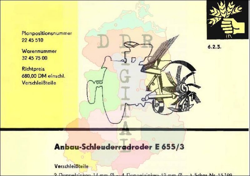 Herausgeber: VVB Landmaschinen- und Traktornbau Leipzig Entwicklungsr- und Herstellerbetrieb: VEB Landmaschinenbau Rotes Banner Döbeln 2 In dem Landmaschinen-Katalog sind Maschinen und Geräte enthalten, welche zur weiteren Mechanisierung in der sozialistischen Landwirtschaft bestimmt waren. Dieser Katalog sollte die Genossenschaften bei der Planung neuer Technik für ihren Betrieb unterstützen.