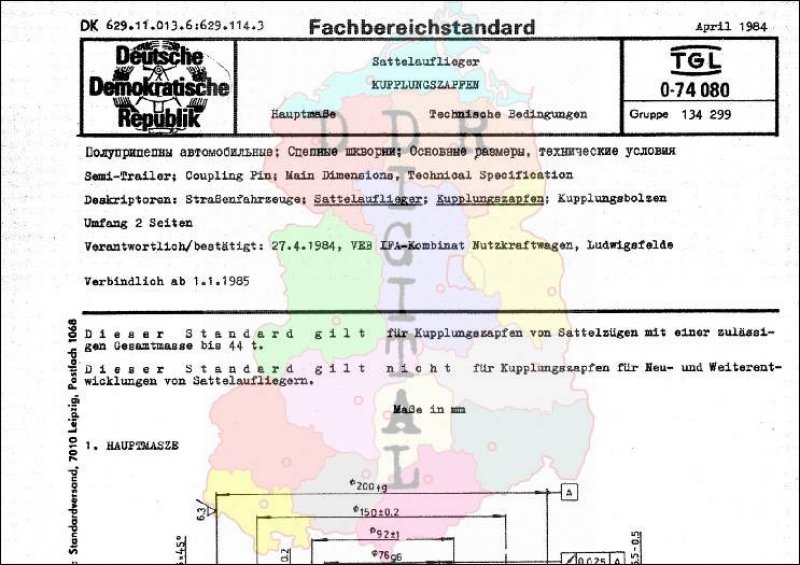 Standard: Fachbereichstandard Ausgabe: April 1984 verbindlich ab: 01.03.1985 Verantwortlich: VEB IFA-Kombinat Nutzkraftwagen Ludwigsfelde bestätigt am: 27.04.1984 Bestätigt von: VEB IFA-Kombinat Nutzkraftwagen Ludwigsfelde Anzahl Seiten: 2