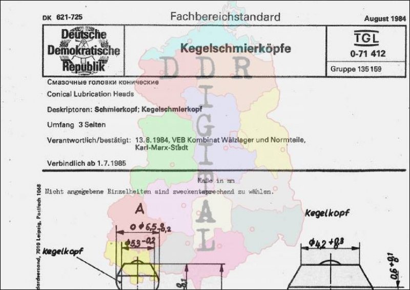 Standard: Fachbereichstandard Ausgabe: August 1984 verbindlich ab: 01.07.1985 Verantwortlich: VEB Kombinat Wälzlager und Normteile Karl-Marx-Stadt bestätigt am: 13.08.1984 Bestätigt von: VEB Kombinat Wälzlager und Normteile Karl-Marx-Stadt Anzahl Seiten: 4