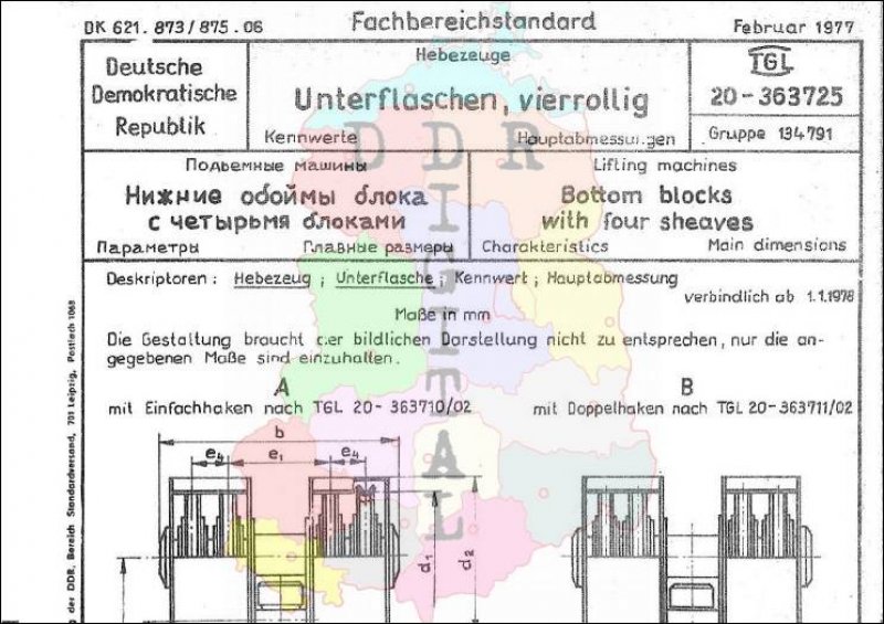Standard: Fachbereichstandard Ausgabe: Februar 1977 verbindlich ab: 01.01.1978 Verantwortlich: VVB Tagebauausrüstungen, Krane und Förderanlagen bestätigt am: 10.02.1977 Bestätigt von: VVB Tagebauausrüstungen, Krane und Förderanlagen Anzahl Seiten: 2