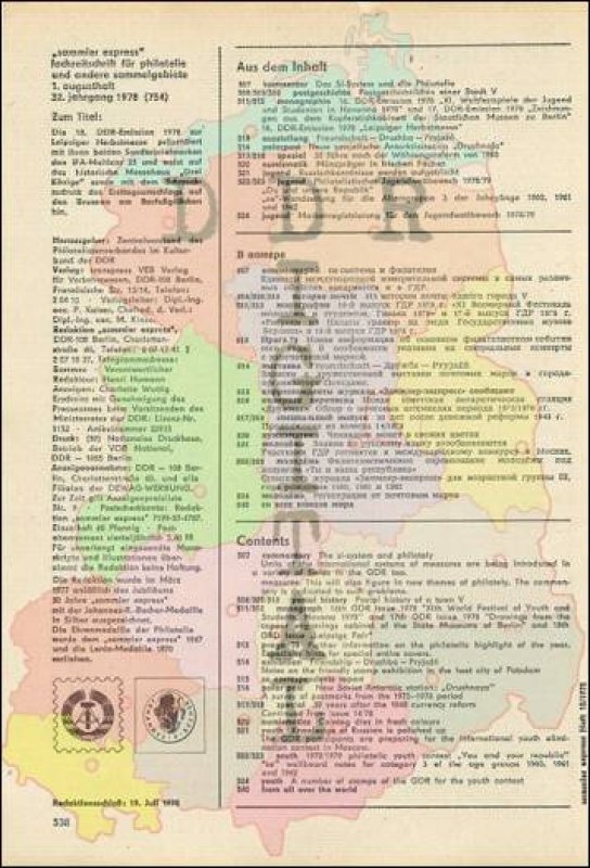 Auflage: Autor: Redaktion "sammler express" Herausgeber: Philatelistenverband im Kulturbund der DDR Erscheinungsjahr: 1978 Anzahl Seiten: 36