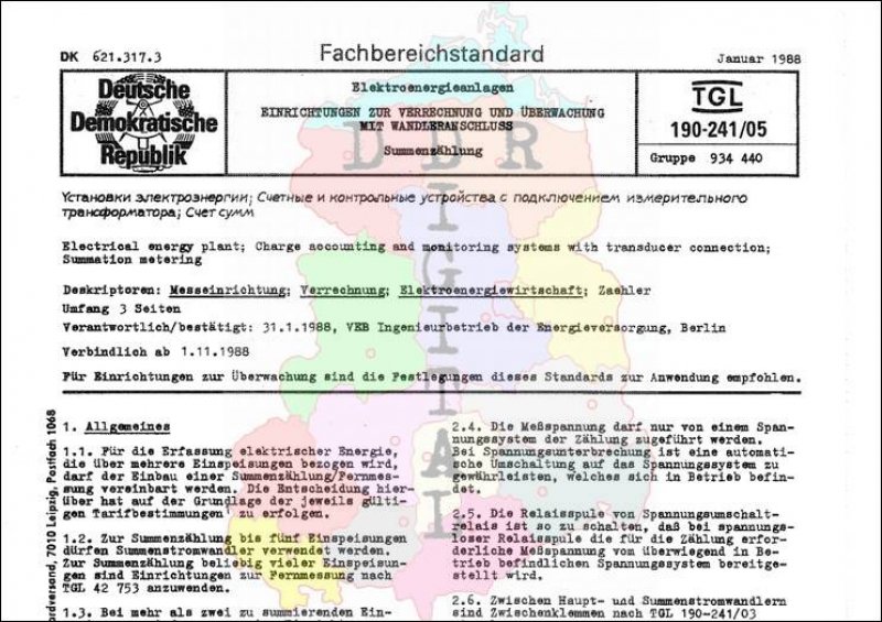 Standard: Fachbereichstandard Ausgabe: Januar 1988 verbindlich ab: 01.11.1988 Verantwortlich: VEB Ingenieurbetrieb der Energieversorgung Berlin bestätigt am: 31.01.1988 Bestätigt von: VEB Ingenieurbetrieb der Energieversorgung Berlin Anzahl Seiten: 4