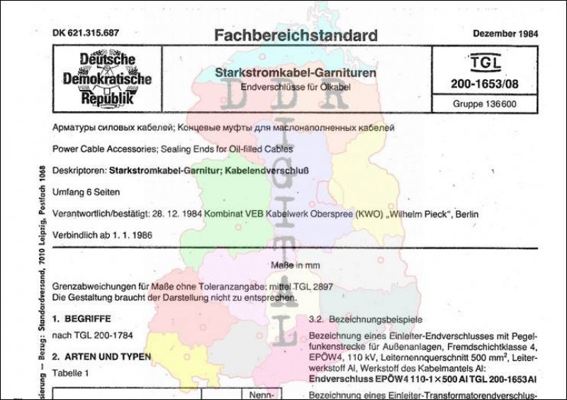 Standard: Fachbereichstandard Ausgabe: Dezember 1984 verbindlich ab: 01.01.1986 Verantwortlich: Kombinat VEB Kabelwerk Oberspree Wilhelm Pieck Berlin bestätigt am: 28.12.194 Bestätigt von: Kombinat VEB Kabelwerk Oberspree Wilhelm Pieck Berlin Anzahl Seiten: 8