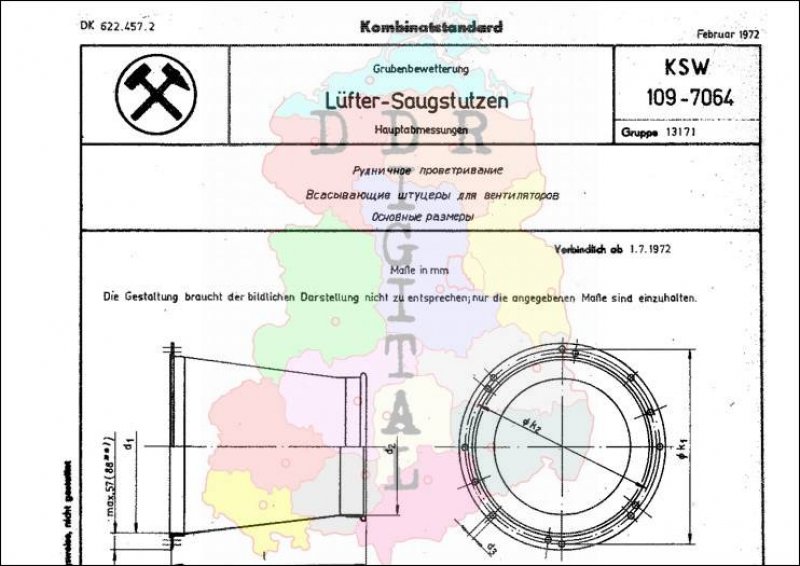 Standard: Kombinatstandard Ausgabe: Februar 1972 verbindlich ab: 01.07.1972 Verantwortlich: Generaldirektion der SDAG Wismut Karl-Marx-Stadt bestätigt am: 01.02.1972 Bestätigt von: Generaldirektion der SDAG Wismut Karl-Marx-Stadt Anzahl Seiten: 2