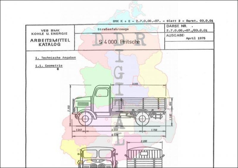 Straßenfahrzeuge: S 4 000 Pritsche Ausgabe: April 1975 Anzahl Seiten: 2 Notiz:
