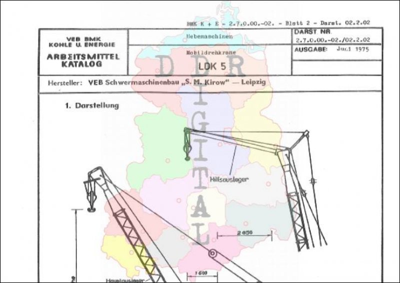 Mobildrehkrane: LDK 5 Hersteller: VEB Schwermaschinenbau S. M. Kirow Leipzig Ausgabe: Juni 1975 Anzahl Seiten: 16 Notiz: