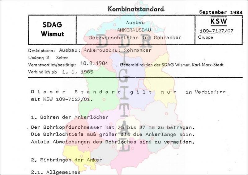 Standard: Kombinatstandard Ausgabe: September 1984 verbindlich ab: 01.01.1985 Verantwortlich: Generaldirektion der SDAG Wismut Karl-Marx-Stadt bestätigt am: 18.09.1984 Bestätigt von: Generaldirektion der SDAG Wismut Karl-Marx-Stadt Anzahl Seiten: 2