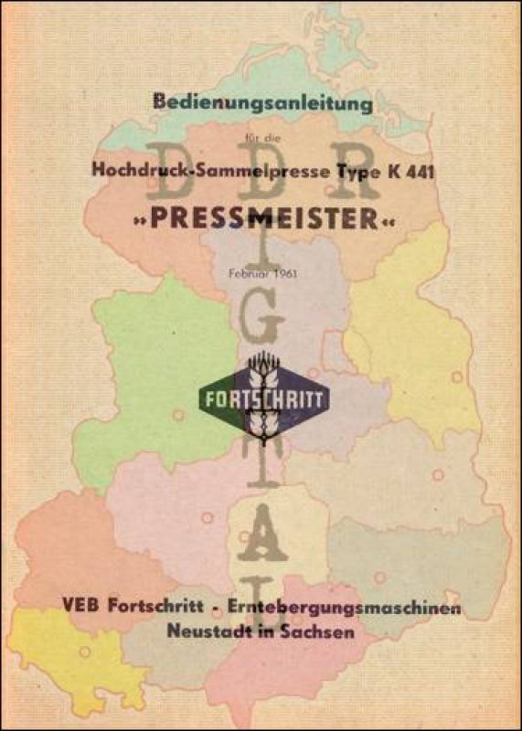 Auflage: Februar 1961 Autor: VEB Fortschritt Erntemaschinen Neustadt Herausgeber: VEB Fortschritt Erntemaschinen Neustadt Erscheinungsjahr: 1961 Anzahl Seiten: 42