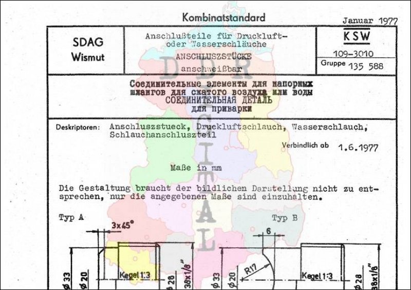 Standard: Kombinatstandard Ausgabe: Januar 1977 verbindlich ab: 01.06.1977 Verantwortlich: Generaldirektion der SDAG Wismut Karl-Marx-Stadt bestätigt am: 31.01.1977 Bestätigt von: Generaldirektion der SDAG Wismut Karl-Marx-Stadt Anzahl Seiten: 2
