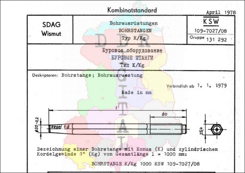 Standard: Kombinatstandard Ausgabe: April 1978 verbindlich ab: 01.01.1979 Verantwortlich: Generaldirektion der SDAG Wismut Karl-Marx-Stadt bestätigt am: 21.04.1978 Bestätigt von: Generaldirektion der SDAG Wismut Karl-Marx-Stadt Anzahl Seiten: 2