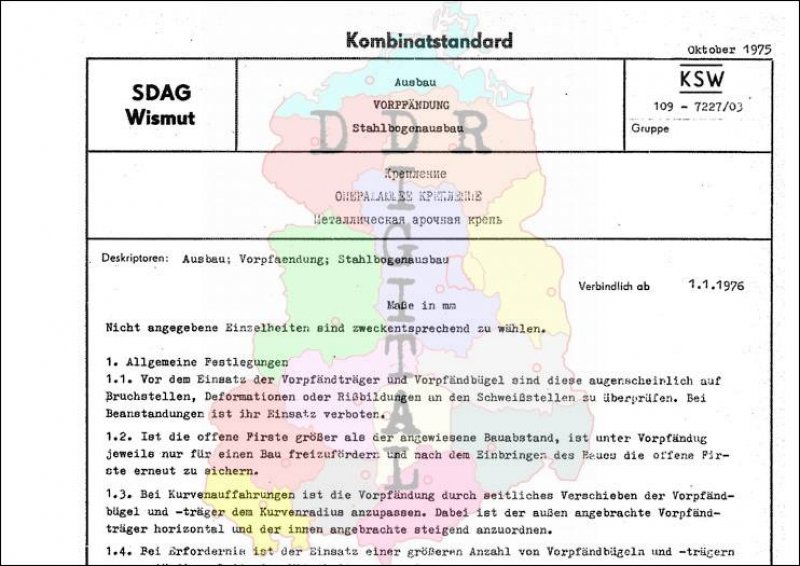 Standard: Kombinatstandard Ausgabe: Oktober 1975 verbindlich ab: 01.01.1976 Verantwortlich: Generaldirektion der SDAG Wismut Karl-Marx-Stadt bestätigt am: 01.10.1975 Bestätigt von: Generaldirektion der SDAG Wismut Karl-Marx-Stadt Anzahl Seiten: 2