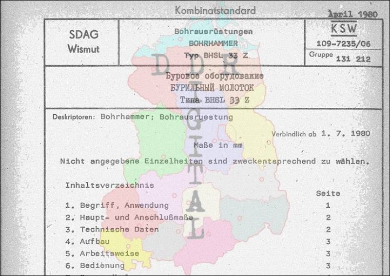 Standard: Kombinatstandard Ausgabe: April 1980 verbindlich ab: 01.07.1980 Verantwortlich: Generaldirektion der SDAG Wismut Karl-Marx-Stadt bestätigt am: 07.04.1980 Bestätigt von: Generaldirektion der SDAG Wismut Karl-Marx-Stadt Anzahl Seiten: 8