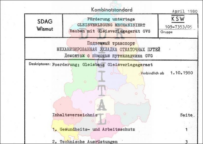 Standard: Kombinatstandard Ausgabe: April 1980 verbindlich ab: 01.10.1980 Verantwortlich: Generaldirektion der SDAG Wismut Karl-Marx-Stadt bestätigt am: 30.04.1980 Bestätigt von: Generaldirektion der SDAG Wismut Karl-Marx-Stadt Anzahl Seiten: 4
