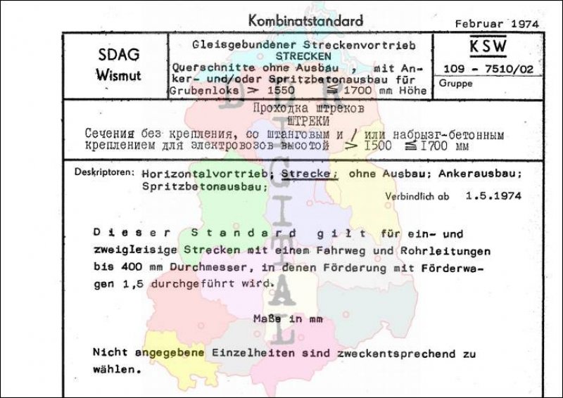 Standard: Kombinatstandard Ausgabe: Februar 1974 verbindlich ab: 01.05.1974 Verantwortlich: Generaldirektion der SDAG Wismut Karl-Marx-Stadt bestätigt am: 07.02.1974 Bestätigt von: Generaldirektion der SDAG Wismut Karl-Marx-Stadt Anzahl Seiten: 8