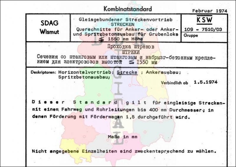 Standard: Kombinatstandard Ausgabe: Februar 1974 verbindlich ab: 01.05.1974 Verantwortlich: Generaldirektion der SDAG Wismut Karl-Marx-Stadt bestätigt am: 07.02.1974 Bestätigt von: Generaldirektion der SDAG Wismut Karl-Marx-Stadt Anzahl Seiten: 8
