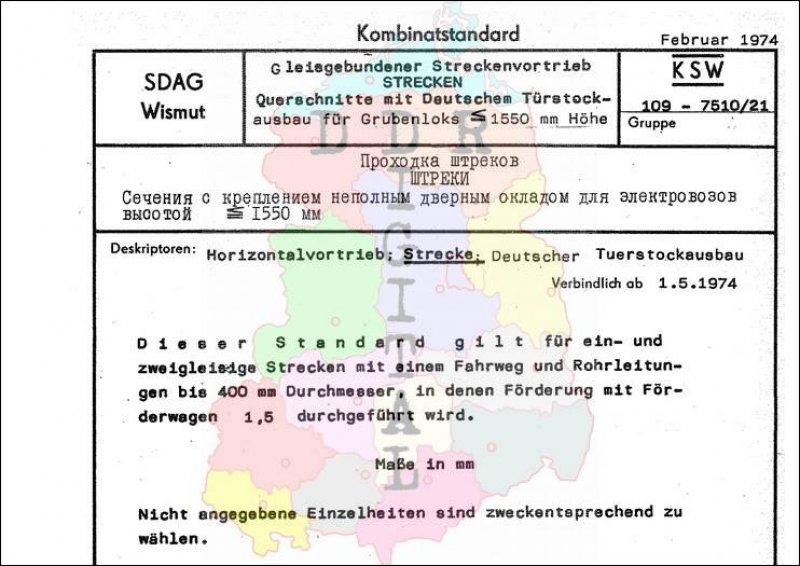 Standard: Kombinatstandard Ausgabe: Februar 1974 verbindlich ab: 01.05.1974 Verantwortlich: Generaldirektion der SDAG Wismut Karl-Marx-Stadt bestätigt am: 07.02.1974 Bestätigt von: Generaldirektion der SDAG Wismut Karl-Marx-Stadt Anzahl Seiten: 12
