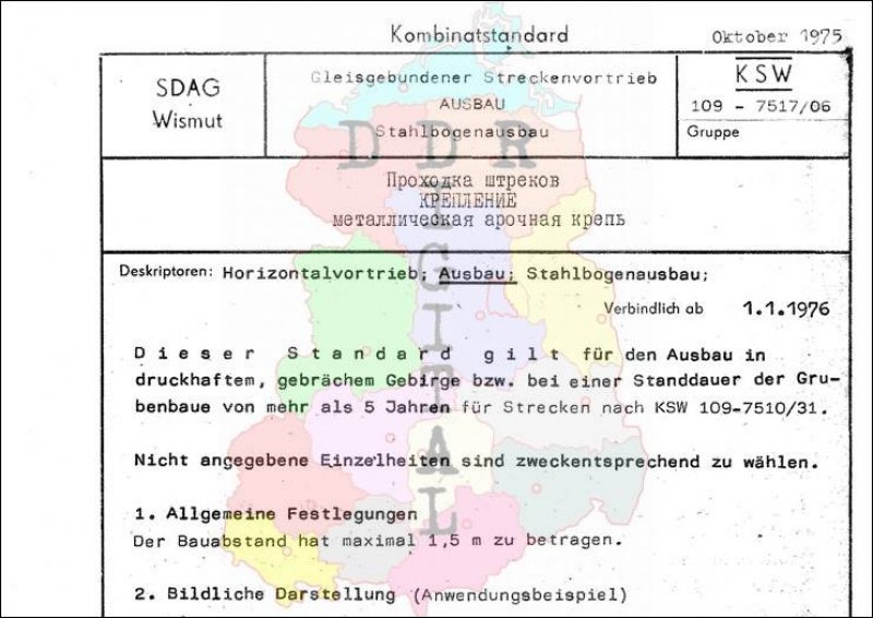 Standard: Kombinatstandard Ausgabe: Oktober 1975 verbindlich ab: 01.01.1976 Verantwortlich: Generaldirektion der SDAG Wismut Karl-Marx-Stadt bestätigt am: 01.10.1975 Bestätigt von: Generaldirektion der SDAG Wismut Karl-Marx-Stadt Anzahl Seiten: 2