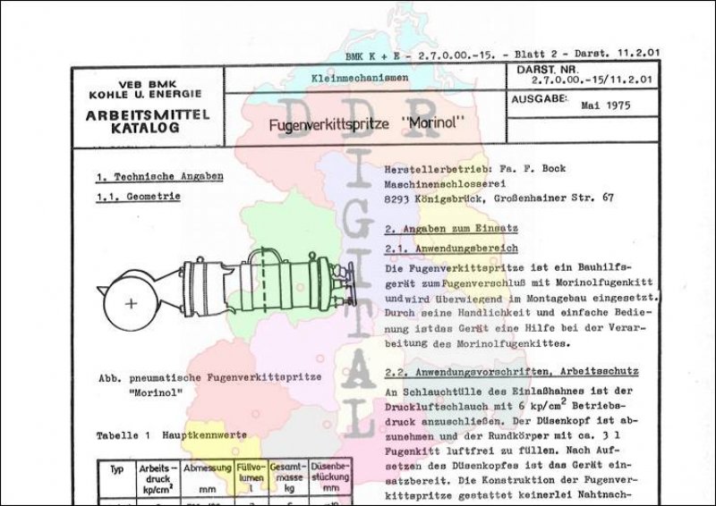 Kleinmechanismen: Fugenverkittspritze Morinol Ausgabe: Mai 1975 Anzahl Seiten: 1 Notiz: