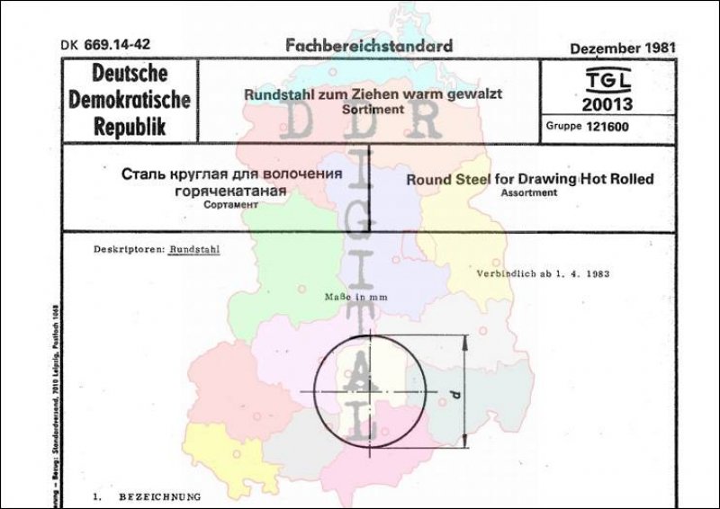 Standard: Fachbereichstandard Ausgabe: Dezember 1981 verbindlich ab: 01.04.1983 Verantwortlich: VEB Qualitäts- und Edelstahl-Kombinat Henningsdorf bestätigt am: 18.12.1981 Bestätigt von: VEB Qualitäts- und Edelstahl-Kombinat Henningsdorf Anzahl Seiten: 4