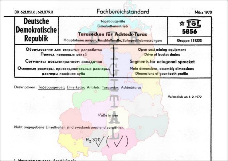 Standard: Fachbereichstandard Ausgabe: März 1978 verbindlich ab: 01.12.1979 Verantwortlich: VVB Tagebauausrüstungen, Krane und Förderanlagen bestätigt am: 20.03.1978 Bestätigt von: VVB Tagebauausrüstungen, Krane und Förderanlagen Anzahl Seiten: 4