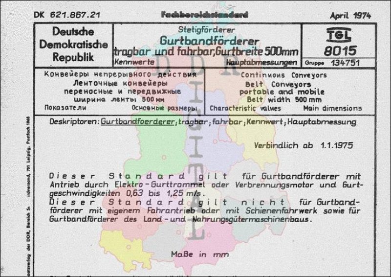 Standard: Fachbereichstandard Ausgabe: April 1974 verbindlich ab: 01.01.1975 Verantwortlich: VVB Tagebauausrüstungen, Krane und Förderanlagen bestätigt am: 29.04.1974 Bestätigt von: VVB Tagebauausrüstungen, Krane und Förderanlagen Anzahl Seiten: 4