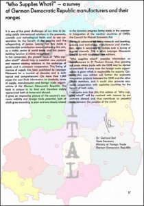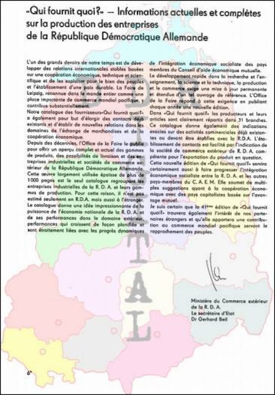 In den Sprachen deutsch, russisch, englisch und französisch. Bei den Doppelseiten 127/128 und 135/136 wurde Ausschnitte herausgeschnitten. Die Seiten 157 bis 160 fehlen. Aus dem Alphabetischen Warenregister fehlen die Seiten 3-8 und noch weitere Seiten.