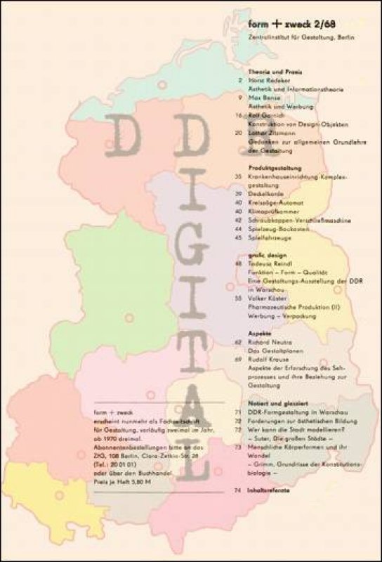 Ausgabe: Autor: Herausgeber: Zentralinstitut für Gestaltung Berlin Erscheinungsjahr: 1968 Anzahl Seiten: 80