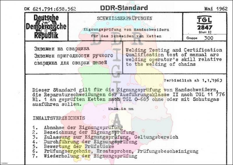 Standard: DDR-Standard Ausgabe: Mai 1962 verbindlich ab: 01.01.1963 Verantwortlich: Zentralinstitut für Schweisstechnik der Deutschen Demokratischen Republik bestätigt am: 21.05.1962 Bestätigt von: Amt für Standardisierung Berlin Anzahl Seiten: 12
