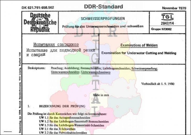 Standard: DDR-Standard Ausgabe: November 1979 verbindlich ab: 01.09.1980 Verantwortlich: Zentralinstitut für Schweisstechnik der Deutschen Demokratischen Republik bestätigt am: 29.11.1979 Bestätigt von: Amt für Standardisierung, Meßwesen und Warenprüfung Anzahl Seiten: 4