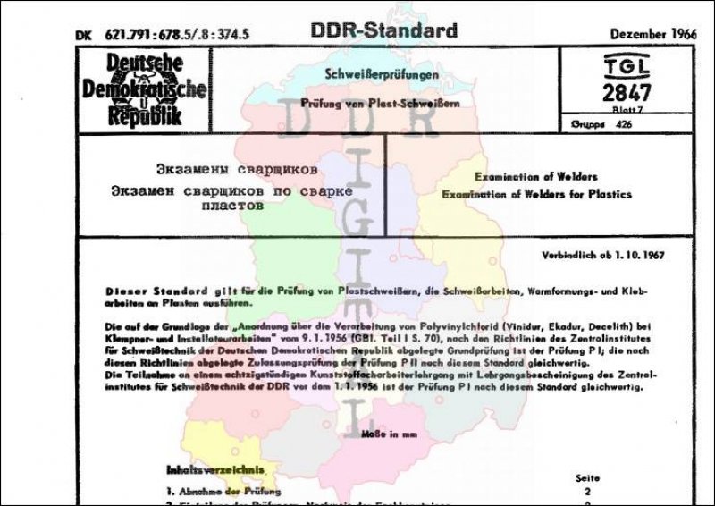 Standard: DDR-Standard Ausgabe: Dezember 1966 verbindlich ab: 01.10.1967 Zuständig: Zentralinstitut für Schweisstechnik Halle bestätigt am: 05.12.1966 Bestätigt von: Amt für Standardisierung Berlin Anzahl Seiten: 16