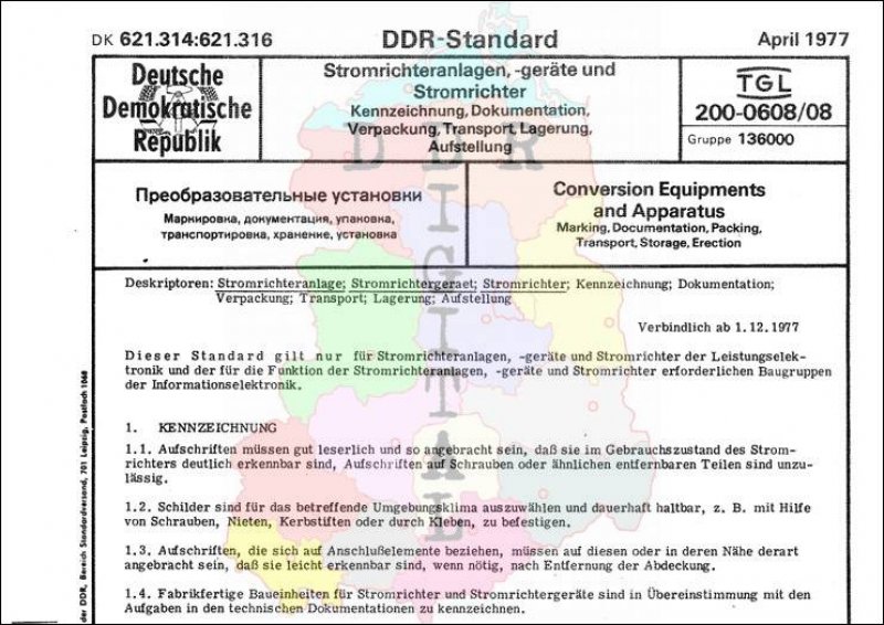 Standard: DDR-Standard Ausgabe: April 1977 verbindlich ab: 01.12.1977 Verantwortlich: VVB Automatisierungs- und Elektroenergie-Anlagen bestätigt am: 28.04.1977 Bestätigt von: Amt für Standardisierung, Meßwesen und Warenprüfung Anzahl Seiten: 4