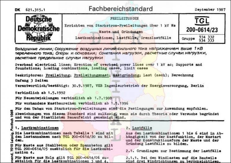 Standard: Fachbereichstandard Ausgabe: September 1987 verbindlich ab: 01.07.1988 Verantwortlich: VEB Ingenieurbetrieb der Energieversorgung Berlin bestätigt am: 30.09.1987 Bestätigt von: VEB Ingenieurbetrieb der Energieversorgung Berlin Anzahl Seiten: 4