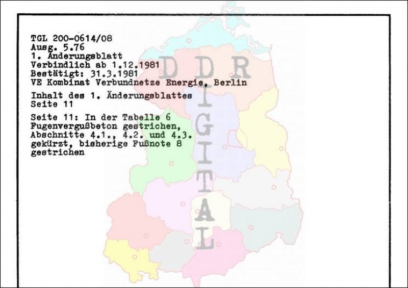 Standard: 1. Änderungsblatt Ausgabe: März 1981 verbindlich ab: 01.12.1981 Verantwortlich: bestätigt am: 31.03.1981 Bestätigt von: VE Kombinat Verbundnetze Energie Berlin Anzahl Seiten: 2 Notiz: