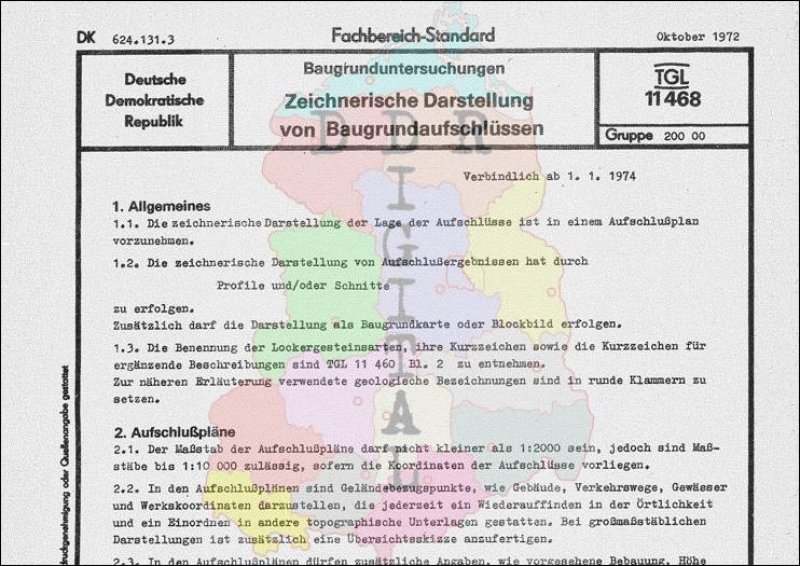 Standard: Fachbereichstandard Ausgabe: Oktober 1972 verbindlich ab: 01.01.1974 Verantwortlich: VEB Baugrund Berlin bestätigt am: 23.10.1972 Bestätigt von: Ministerium für Bauwesen Anzahl Seiten: 6