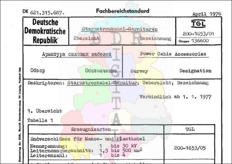 Standard: Fachbereichstandard Ausgabe: April 1976 verbindlich ab: 01.01.1977 Verantwortlich: Kombinat VEB Kabelwerk Oberspree Wilhelm Pieck Berlin bestätigt am: 30.04.1976 Bestätigt von: Kombinat VEB Kabelwerk Oberspree Wilhelm Pieck Berlin Anzahl Seiten: 8